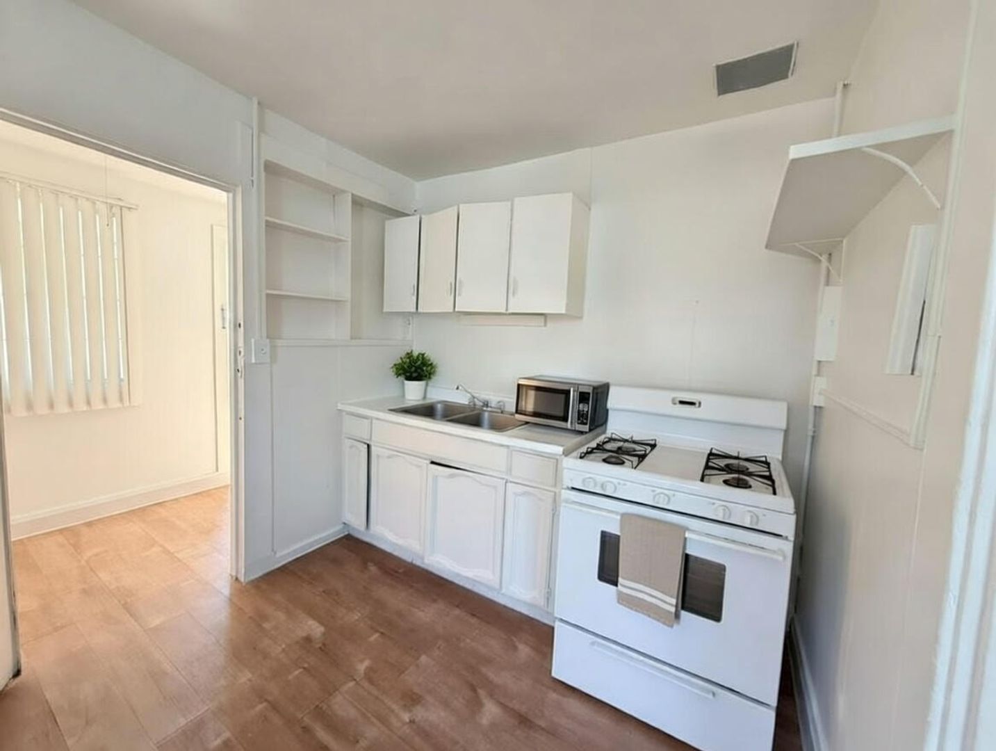 •Appliances including gas stove, refrigerator, microwave, and dishwasher