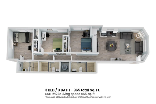 •Spacious 3 bedroom / 3 bathroom layout