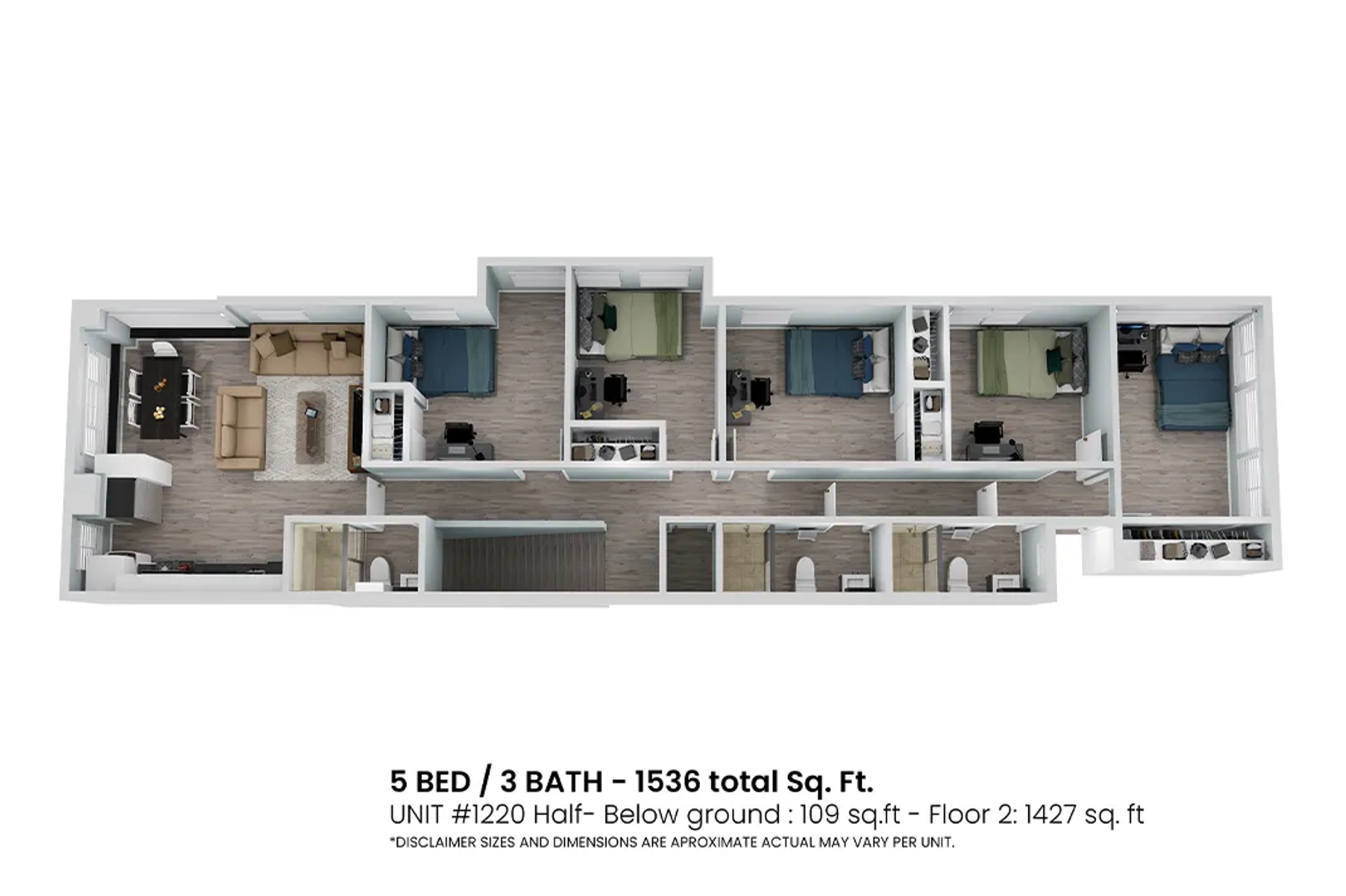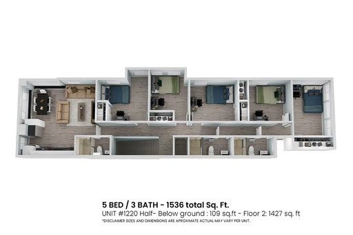 •Spacious 5 bedroom / 3 bathroom layout