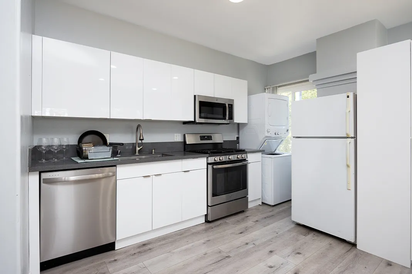 •Stove, refrigerator, microwave, and dishwasher included